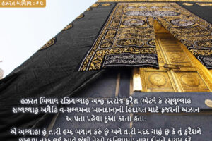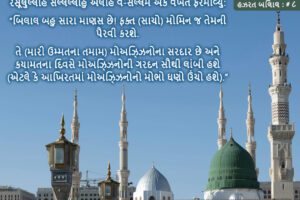 قال رسول الله صلى الله عليه وسلم: نعم المرء بلال، ولا يتبعه إلا مؤمن، وهو سيد المؤذنين (من أمتي)، والمؤذنون أطول الناس أعناقا يوم القيامة (أي: يكونون من أصحاب الرتب العالية في الآخرة). (المعجم الكبير، الرقم: ٥١١٩) રસૂલુલ્લાહ સલ્લલ્લાહુ અલૈહિ વ-સલ્લમે એક વખત ફરમાવ્યું: “બિલાલ બહુ સારા માણસ છે! ફક્ત …