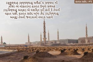 أوصت أم المؤمنين السيدة أم سلمة رضي الله عنها أن يصلي عليها سعيد بن زيد رضي الله عنه (مصنف ابن أبي شيبة، الرقم: ١١٢٩٩) રસૂલુલ્લાહ (સલ્લલ્લાહુ અલૈહિ વ-સલ્લમ) ની ઝૌજા-એ-મોહતરમા હઝરત ઉમ્મે-સલમહ (રદ઼િયલ્લાહુ અન્હા) એ વસિયત કરી હતી કે તેમની વફાત પછી, હઝરત સઈદ બિન-ઝૈદ (રદ઼િયલ્લાહુ અન્હુ) તેમની જનાઝાની નમાઝ …