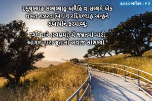 ذات مرة، قال رسول الله صلى الله عليه وسلم لسيدنا بلال رضي الله عنه: سمعت الليلة خشف نعليك بين يدي في الجنة (في رؤيا أريته) (من صحيح مسلم، الرقم: 2458) રસૂલુલ્લાહ સલ્લલ્લાહુ અલૈહિ વ-સલ્લમે એક વખત હઝરત બિલાલ રદ઼િયલ્લાહુ અન્હુને સંબોધીને ફરમાવ્યું: ”ગઈ રાત્રે (સ્વપ્નમાં) મેં જન્નતમાં મારી આગળ તારા …