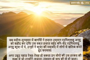 بعدما قتل البغاةُ سيدنا عثمان رضي الله عنه في المدينة المنورة، خاطب سيدنا سعيد بن زيد -وكان في الكوفة – الناس في مسجد الكوفة فقال لهم: لو أن أحدا ارفض (استطاع أن تتفرق أجزاؤه) للذي صنعتم بعثمان (من ظلمه وقتله) لكان (لارفض) (صحيح البخاري، الرقم: ٣٨٦٢) जब मदीना-मुनव्वरा में बागियों …