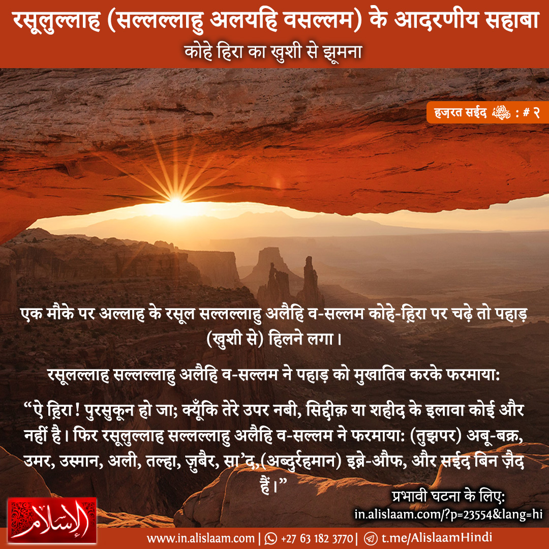 एक मौके पर अल्लाह के रसूल सल्लल्लाहु अलैहि व-सल्लम कोहे-ह़िरा पर चढ़े तो पहाड़ (खुशी से) हिलने लगा।